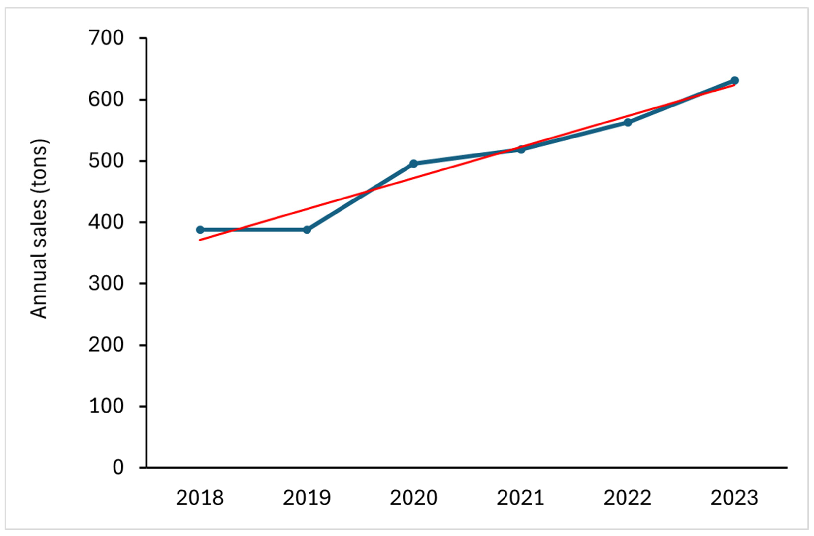 | PFAS Active Substances | Average Frequency of Detection | Log Koc 1 | Average Sales in 2021–2023 (tons) | |