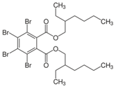 - Pape, P.G.; Sanger, J.E.; Nametz, R.C. Tetrabromophthalic anhydride in flame-retardant urethane foams. J. Cell. Plast. 1968, 4, 438–442. [Google Scholar] [CrossRef]