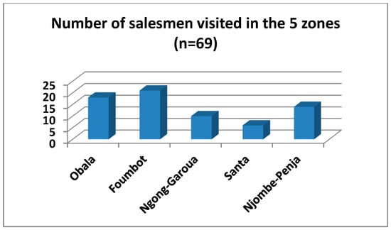 In total, 69 pesticide sale-points were visited in the five agro-ecological zones (