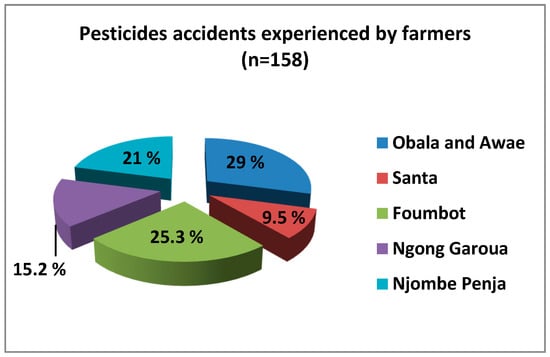 Concerning themselves, 158 farmers interviewed declared to have experienced at least one case of pesticide accident during manipulation, as shown in