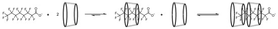 - Karoyo, A.H.; Borisov, A.S.; Wilson, L.D.; Hazendonk, P. Formation of host-guest complexes of β-cyclodextrin and perfluorooctanoic acid. J. Phys. Chem. B 2011, 115, 9511–9527. [Google Scholar] [CrossRef] [PubMed]