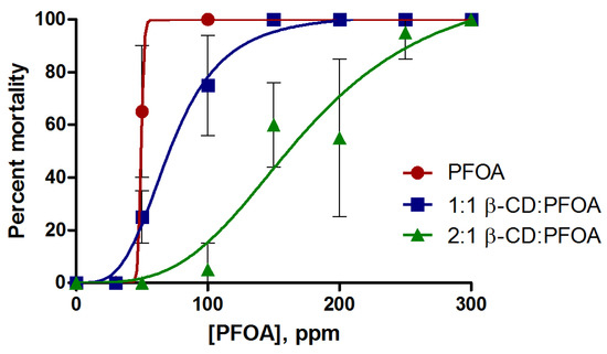 Weiss-Errico, M.J.; Berry, J.P.; O’Shea, K.E. β-Cyclodextrin Attenuates Perfluorooctanoic Acid Toxicity in the Zebrafish Embryo Model. Toxics 2017, 5, 31. https://doi.org/10.3390/toxics5040031