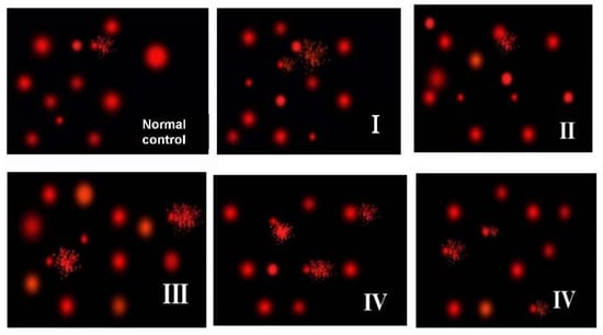 - Singh, N.P.; McCoy, M.T.; Tice, R.R.; Schneider, E.L. A simple technique for quantitation of low levels of DNA damage in individual cells. Exp. Cell Res. 1988, 175, 184–191. Available online: https://iths.pure.elsevier.com/en/publications/a-simple-technique-for-quantitation-of-low-levels-of-dna-damage-i (accessed on 20 December 2017). [CrossRef]