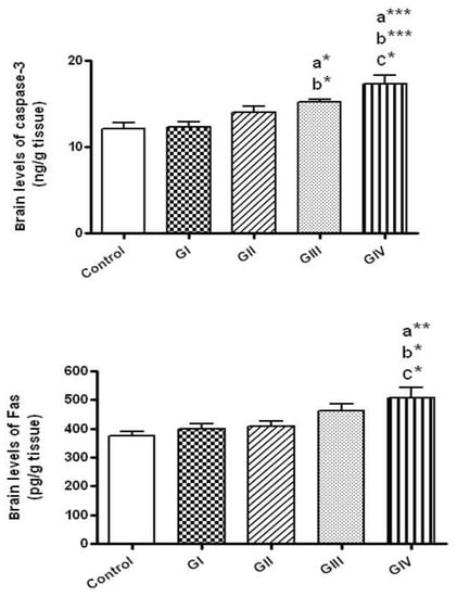 2.9. Assay of Apoptotic Markers (Fas & Caspase-3) in Brain Tissues