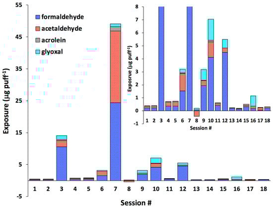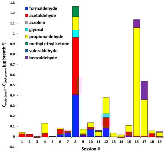 Samburova, V.; Bhattarai, C.; Strickland, M.; Darrow, L.; Angermann, J.; Son, Y.; Khlystov, A. Aldehydes in Exhaled Breath during E-Cigarette Vaping: Pilot Study Results. Toxics 2018, 6, 46. https://doi.org/10.3390/toxics6030046
