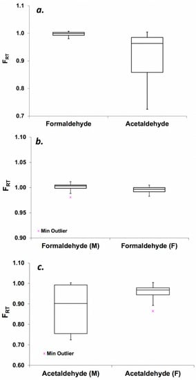 - Egle, J.L. Retention of inhaled formaldehyde, propionaldehyde, and acrolein in the dog. Arch. Environ. Health 1972, 25, 119–124. [Google Scholar] [CrossRef] [PubMed]
