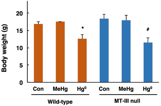 - Tokumoto, M.; Lee, J.Y.; Shimada, A.; Tohyama, C.; Satoh, M. Glutathione has a more important role than metallothionein-I/II against inorganic mercury-induced acute renal toxicity. J. Toxicol. Sci. 2018, 43, 275–280. [Google Scholar] [CrossRef] [PubMed]