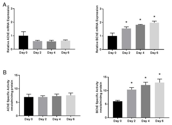 3.2. Butyrylcholinesterase mRNA Expression and Activity Progressively Increases During Differentiation