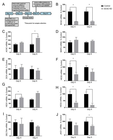 3.4. Knockdown of BChE mRNA Alters HES5 mRNA Expression