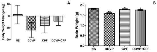 3.1. Morphometric Changes Following Exposure to DDVP and CPF