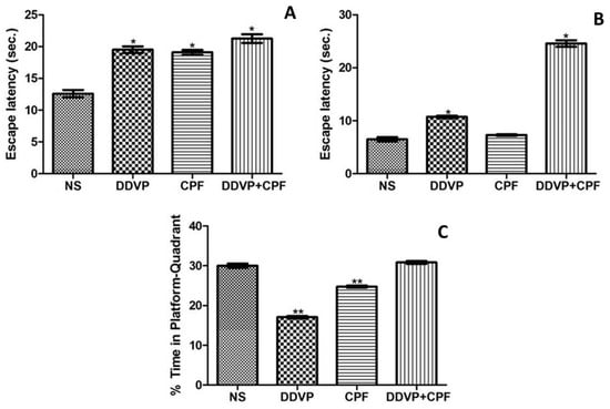 3.2. Effects of DDVP and CPF Exposures on Spatial Working Memory