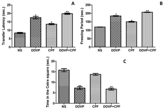 3.3. DDVP and CPF Exposures Increased Anxiety-Like Behavious