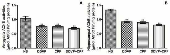 3.4. DDVP and CPF Exposures Inhibit Anticholinesterase in the Amygdala and Hippocampus
