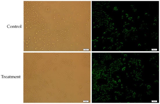 Cellular uptake measured after 2 h of control (doxorubicin as a free drug) and treatment (doxorubicin bound to MgF2 nanoparticles).