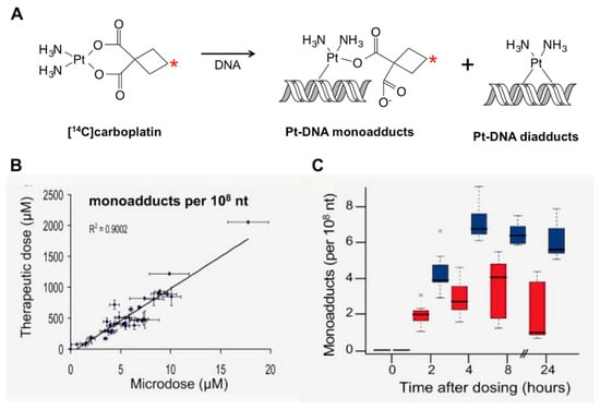 - Henderson, P.T.; Li, T.; He, M.; Zhang, H.; Malfatti, M.; Gandara, D.; Grimminger, P.P.; Danenberg, K.D.; Beckett, L.; de Vere White, R.W.; et al. A microdosing approach for characterizing formation and repair of carboplatin-DNA monoadducts and chemoresistance. Int. J. Cancer 2011, 129, 1425–1434. [Google Scholar] [CrossRef] [PubMed]