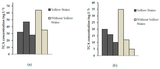 A comparison of TCA between cork samples with and without yellow stains is shown in
