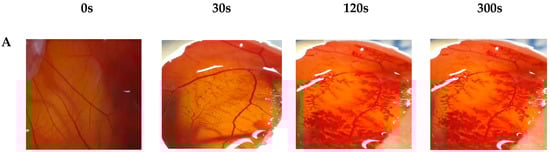 2.3.5. In Vitro Hen’s Egg Test on the Chorioallantoic Membrane (HET-CAM)