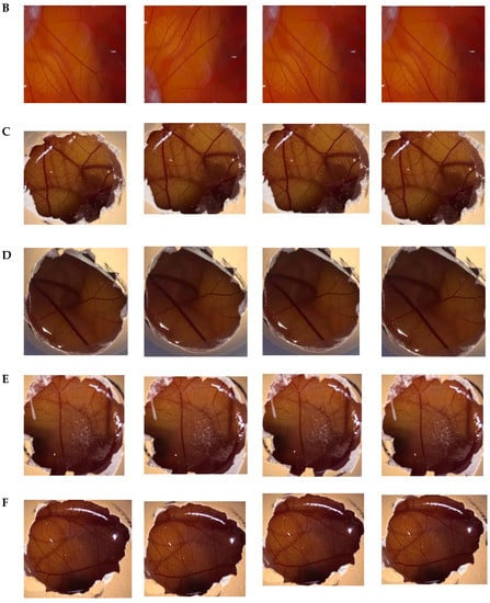 - McKenzie, B.; Kay, G.; Matthews, K.H.; Knott, R.M.; Cairns, D. The hen’s egg chorioallantoic membrane (HET-CAM) test to predict the ophthalmic irritation potential of a cysteamine-containing gel: Quantification using Photoshop(R) and ImageJ. Int. J. Pharm. 2015, 490, 1–8. [Google Scholar] [CrossRef]
