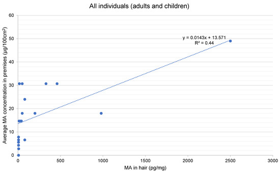 Exposure in a property may occur via direct contact, resulting in incidental ingestion of residues from hands and items, as well as dermal absorption [24,25,26]. The inhalation of methamphetamine present in dust and in the vapour phase is also expected to occur [1,27]. Hence, all data collected from all surfaces may contribute to the level of exposure. However, as the number of samples and surface types varied between each case study, the average residue level reported in Table 2 should only be considered as indicative.