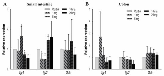 3.3.2. mRNA Expression Analysis of Tjps and Ocln Genes