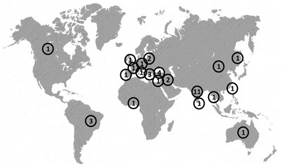 India is the country of origin of most of the authors analyzed, followed by Greece and Turkey. This also reflects the spatial distribution of the case studies to which the developed MCDM approaches have been applied. It is important to underline that these areas have a high production of e-waste, but recycling rates and circular economy approaches are rather poor. Probably, this relevant problem (also considering the high rates of informal management, especially in India) has prompted researchers to analyze and look for better solutions.