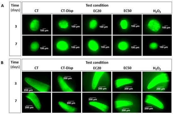 Gomes, S.I.L.; Neves, A.B.; Scott-Fordsmand, J.J.; Amorim, M.J.B. Reactive Oxygen Species Detection Using Fluorescence in Enchytraeus crypticus—Method Implementation through Ag NM300K Case Study. Toxics 2021, 9, 232. https://doi.org/10.3390/toxics9100232