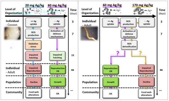 - Bicho, R.C.; Ribeiro, T.; Rodrigues, N.P.; Scott-Fordsmand, J.J.; Amorim, M.J.B. Effects of Ag nanomaterials (NM300K) and Ag salt (AgNO3) can be discriminated in a full life cycle long term test with Enchytraeus crypticus. J. Hazard. Mater. 2016, 318, 608–614. [Google Scholar] [CrossRef]