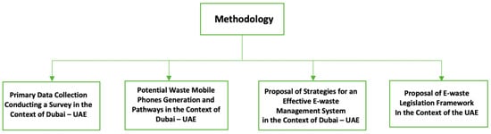 However, e-waste management systems in many countries around the world are supported by e-waste legislations which are different from one country to the other because they address each country’s specific e-waste problems. The EU, for example, is a pioneer in issuing e-waste directives among all its member nations to regulate and manage e-waste. Through its WEEE directives, issued in 2012, the e-waste management law covers e-waste collection, recycling, reuse, and metals recovery []. Therefore, a holistic e-waste legislation specific to the UAE should be framed to support the current e-waste management system in the country.