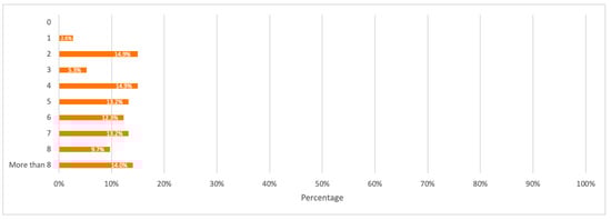 SurveyMonkey tool also has an effective margin of error calculator which was used to obtain this study survey’s margin of error []. Based on the sample size and Dubai population, a margin of error of 9% was obtained at a confidence level of 95%. This margin of error is below 10% which makes the sample size relatively good. However, future studies should increase the sample size for a lower margin of error and a higher confidence as one effective suggestion.