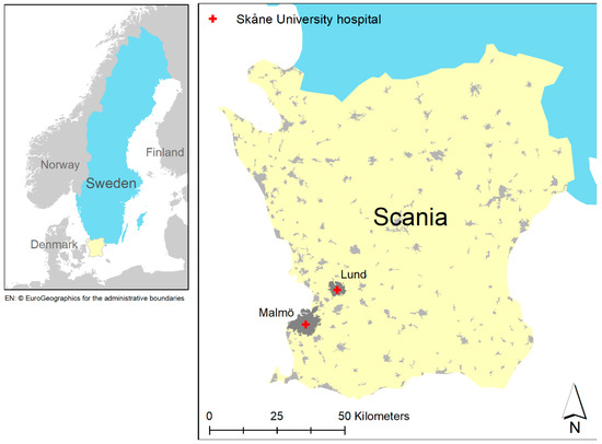 Study setting in Scania, Sweden, showing the two recruitment hospitals.