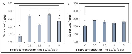 3.1. Dietary SeNP Effect on Growth Performance and Weight of Dissected Tissues