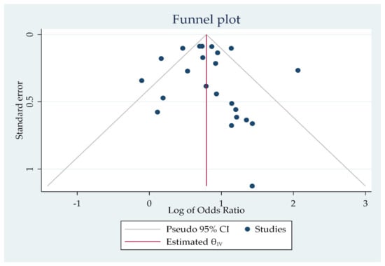 All the statistical analysis and forest plots were generated using the statistical software STATA version 16.0. The values of Odds Ratio’s and Confidence intervals collected were subjected to statistical conversion by applying Log to Odds Ratio’s and 95% CIs into their respective Risk Ratio values and their CIs. These were considered as effect size values. A standard error (SE) has been estimated based on the calculated log values of 95% Confidence Intervals. A funnel plot was generated by obtaining standard error values and the effect size values, whereas the Forest plots were populated based on the collected values of ORs and the estimated 95% CIs based on overall effect size from their respective finalized studies.