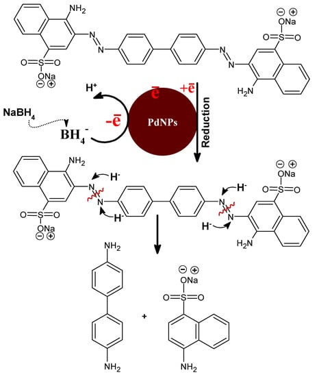 - Salem, M.A.; Bakr, E.A.; El-Attar, H.G. Pt@Ag and Pd@Ag core/shell nanoparticles for catalytic degradation of Congo red in aqueous solution. Spectrochim. Acta Part A Mol. Biomol. Spectrosc. 2018, 188, 155–163. [Google Scholar] [CrossRef]