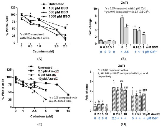 Figure 4 depicts the influence of BSO or aza-dC pretreatment on the changes in expression levels of some zinc transporters caused by subsequent Cd exposure.