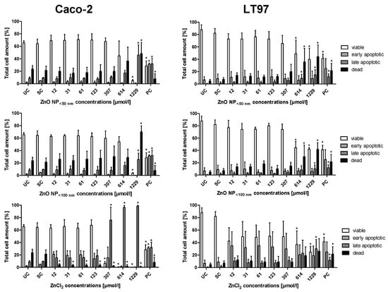 - De Berardis, B.; Civitelli, G.; Condello, M.; Lista, P.; Pozzi, R.; Arancia, G.; Meschini, S. Exposure to ZnO nanoparticles induces oxidative stress and cytotoxicity in human colon carcinoma cells. Toxicol. Appl. Pharmacol. 2010, 246, 116–127. [Google Scholar] [CrossRef]