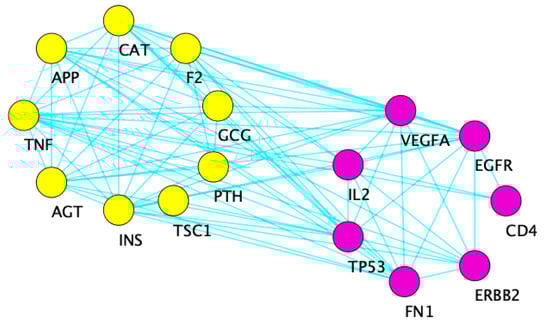- Shannon, P.; Markiel, A.; Ozier, O.; Baliga, N.S.; Wang, J.T.; Ramage, D.; Amin, N.; Schwikowski, B.; Ideker, T. Cytoscape: A software environment for integrated models of biomolecular interaction networks. Genome Res. 2003, 13, 2498–2504. [Google Scholar] [CrossRef] [PubMed]
