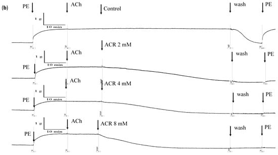 3.2. Effects of L-NAME, Atropine, and Mecamylamine on ACR-Induced Vasorelaxation