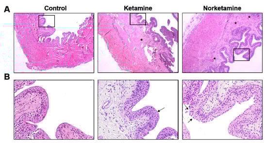 3.3. Histological Changes Corresponding to Ketamine and Norketamine-Induced Damage in Bladder