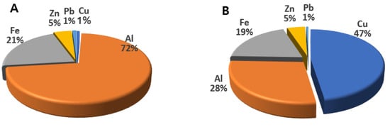 Proportion of metals in PM2.5 (A) and TSP (B).