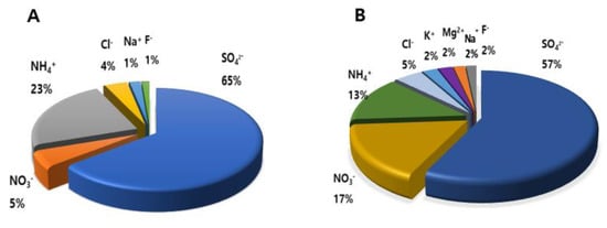 Proportion of ions in PM2.5 (A) and TSP (B).