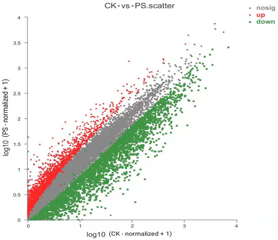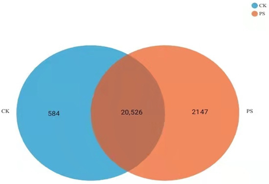 Pearson’s correlation analysis between the PS treatment group and control group shows a strong correlation between the biological duplicate samples of the PS group and the CK group (>0.9), indicating that the subsequent analyses are credible (Supplementary Figure S1).