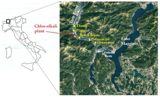 - Fantozzi, L.; Guerrieri, N.; Manca, G.; Orrù, A.; Marziali, L. An Integrated Investigation of Atmospheric Gaseous Elemental Mercury Transport and Dispersion Around a Chlor-Alkali Plant in the Ossola Valley (Italian Central Alps). Toxics 2021, 9, 172. [Google Scholar] [CrossRef] [PubMed]