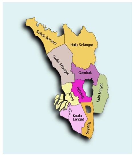 Figure 1. Map of Selangor showing the nine districts encircling Federal Territory, Kuala Lumpur.