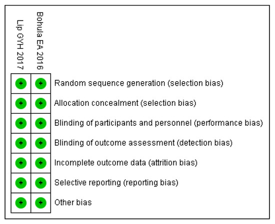 - Egger, M.; Davey Smith, G.; Schneider, M.; Minder, C. Bias in meta-analysis detected by a simple, graphical test. BMJ 1997, 315, 629–634. [Google Scholar] [CrossRef]