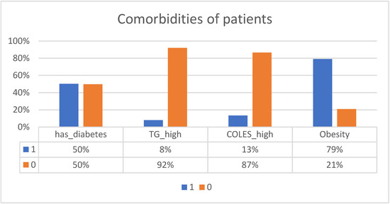 After analyzing the existing data, we established three main patterns of patients who showed up for hospitalization: Cluster 3 (36%)had pretty good triglycerides, cholesterol, and diabetes but quite severe hypertension and obesity;Cluster 2 (44%)had severe comorbidities; Cluster 1 was the most stable group, with 20% of patients having not-so-severe comorbidities.