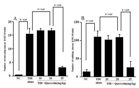 3.3. Influence of Quercetin on the Development of TDI-Induced Nasal Allergy-Like Symptoms