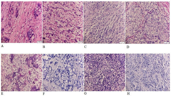 Histological types of breast cancer: (A) Invasive ductal carcinoma; (B) Invasive lobular carcinoma; (C) Mixed (invasive ductal and lobular) carcinoma; (D) Medullary carcinoma; (E) Metaplastic carcinoma; (F) Mucinous carcinoma; (G) Papillary carcinoma; (H) Secretory carcinoma.