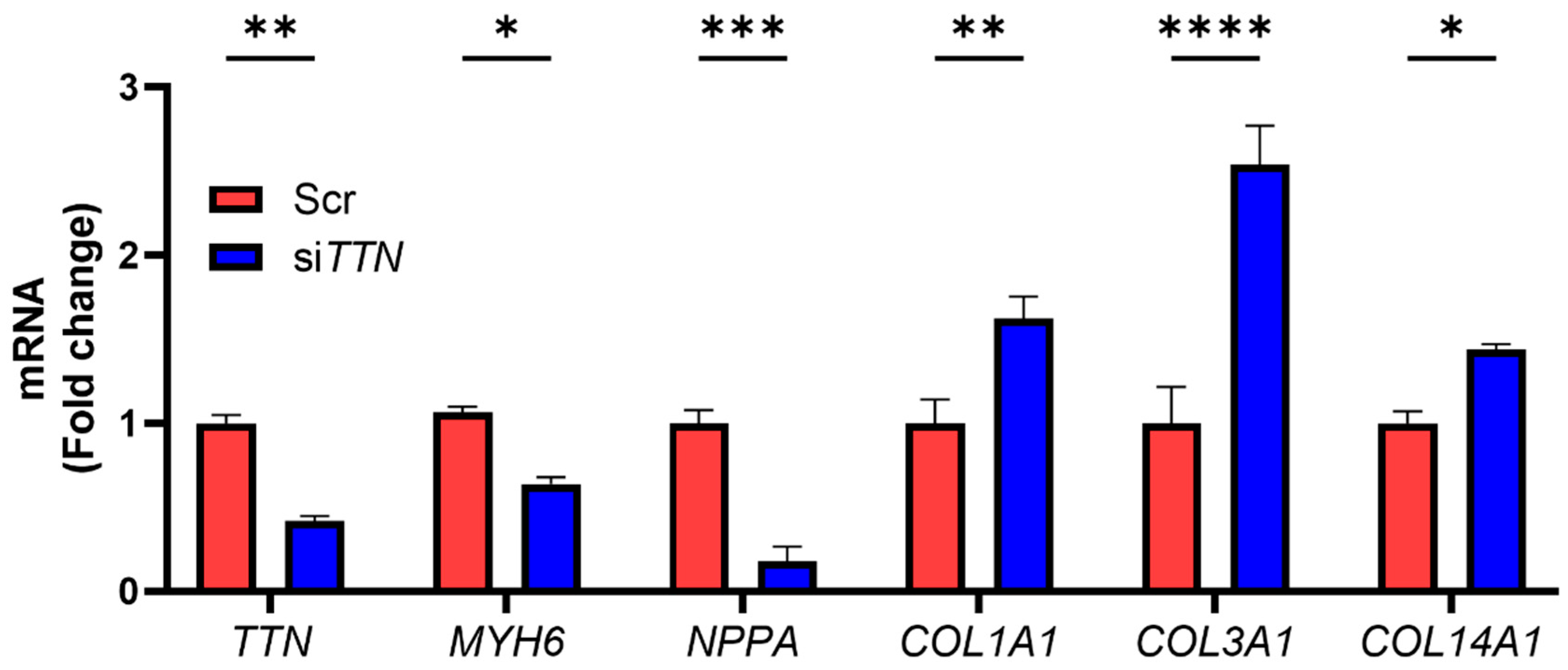 3.4. TMP-195 Restores Cardiac Functional Gene Expression and Suppresses Fibrosis-Associated Gene Following TTN Silencing
