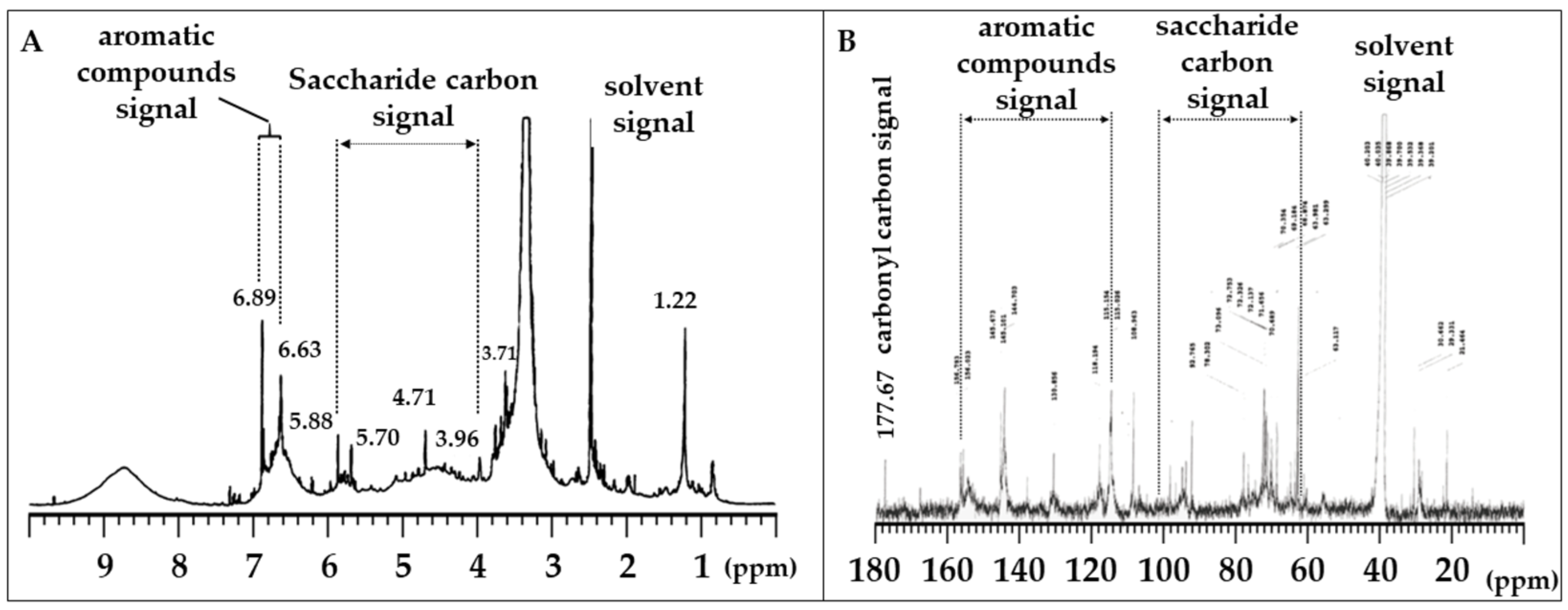 2.6. Nuclear Magnetic Resonance (NMR) Spectroscopy and Liquid Chromatography Analysis