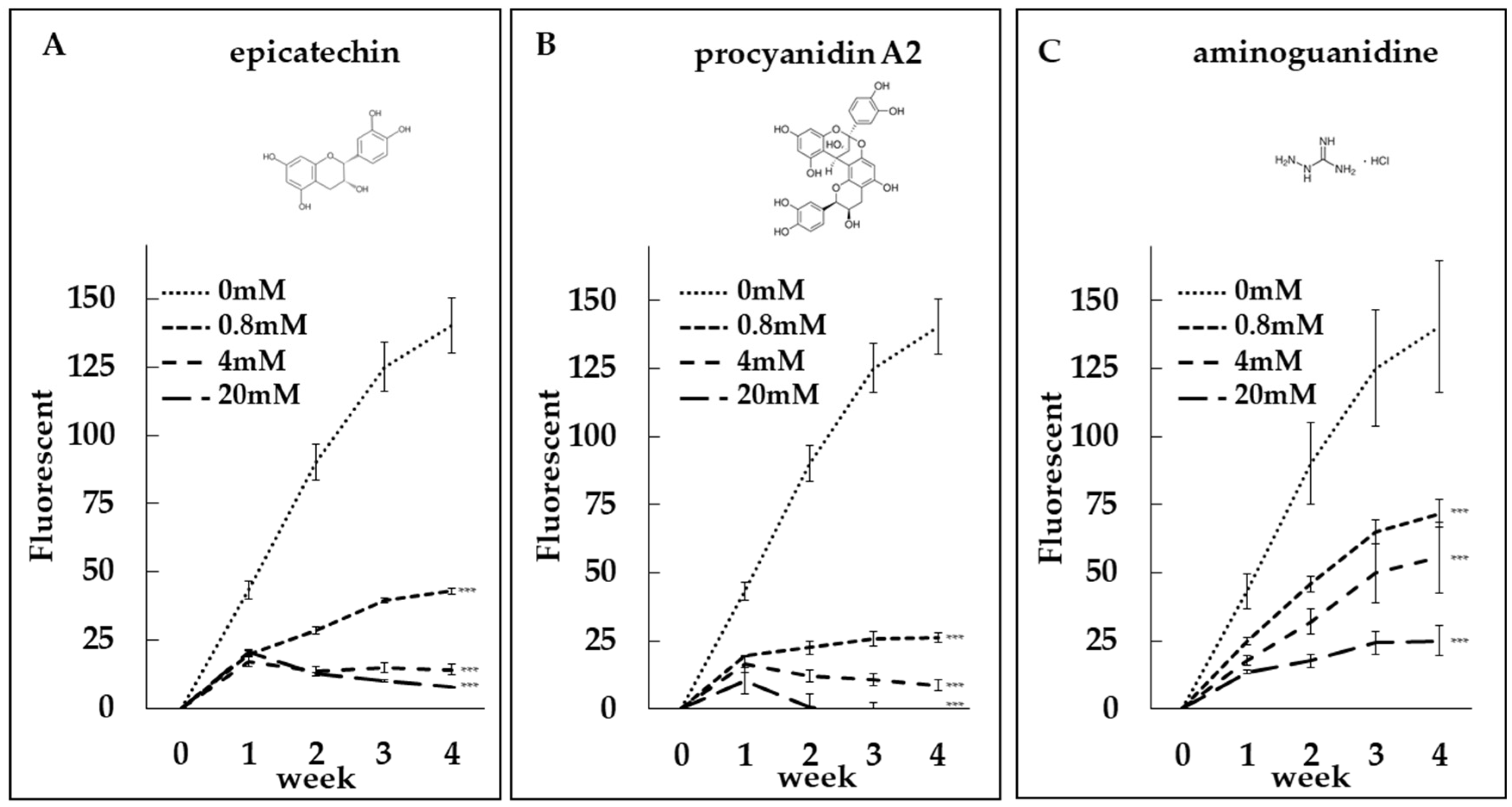 3.4. Epicatechin and Procyanidin A2 Reduce Collagen Glycation